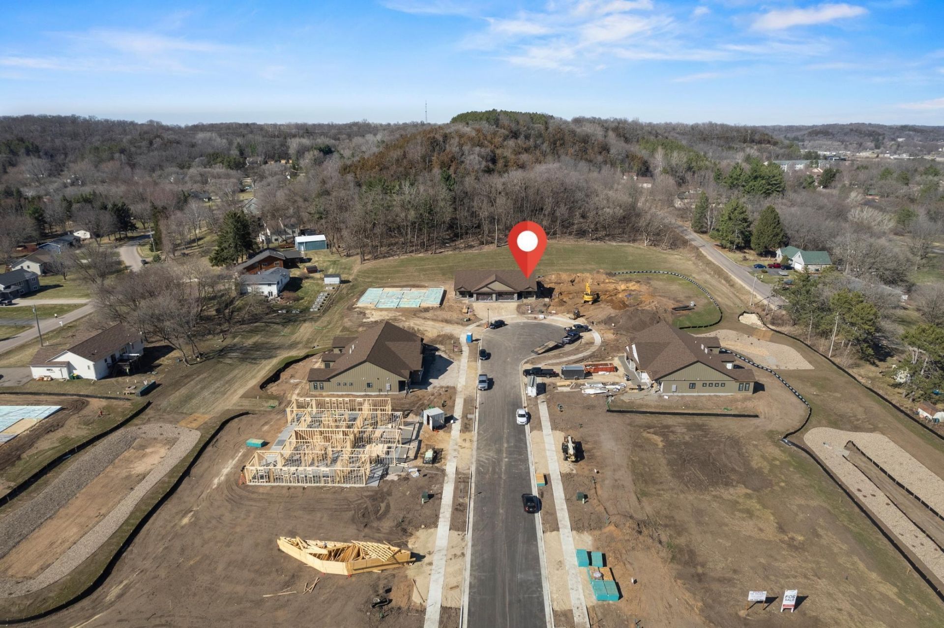 MOVE RIGHT IN! Completed new construction luxury twin home offering 3 bedrooms, 2 bathrooms, and 1,754 sq. ft. of single-level living. Designed for comfort and convenience, this home features a zero-entry layout, in-floor heat, 9' ceilings, gas fireplace, LP Smart Siding, Andersen 400 Series windows, and included washer and dryer. The kitchen is a standout with an oversized island, knotty alder cabinetry, Dekton countertops, stainless steel appliances, tile backsplash, and under-cabinet lighting. A functional mudroom off the garage includes a convenient pass-through to the primary closet?one of the home's most thoughtful design features. Enjoy a private setting with peaceful wooded views. Exterior highlights include a 12' x 5' insulated patio storage unit and additional finished storage space above the garage. With HOA-covered lawn care and snow removal, plus a location near hospitals, shopping, and the Twin Cities Metro, this home offers easy, low-maintenance luxury living.